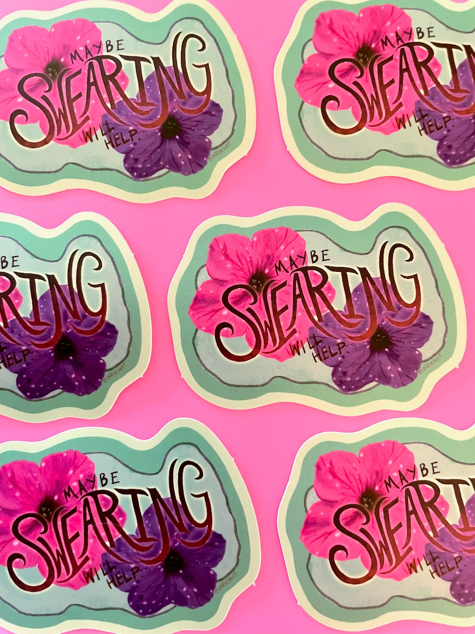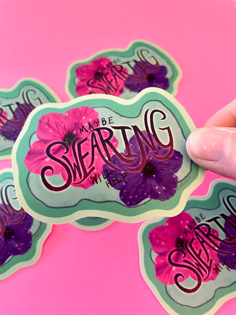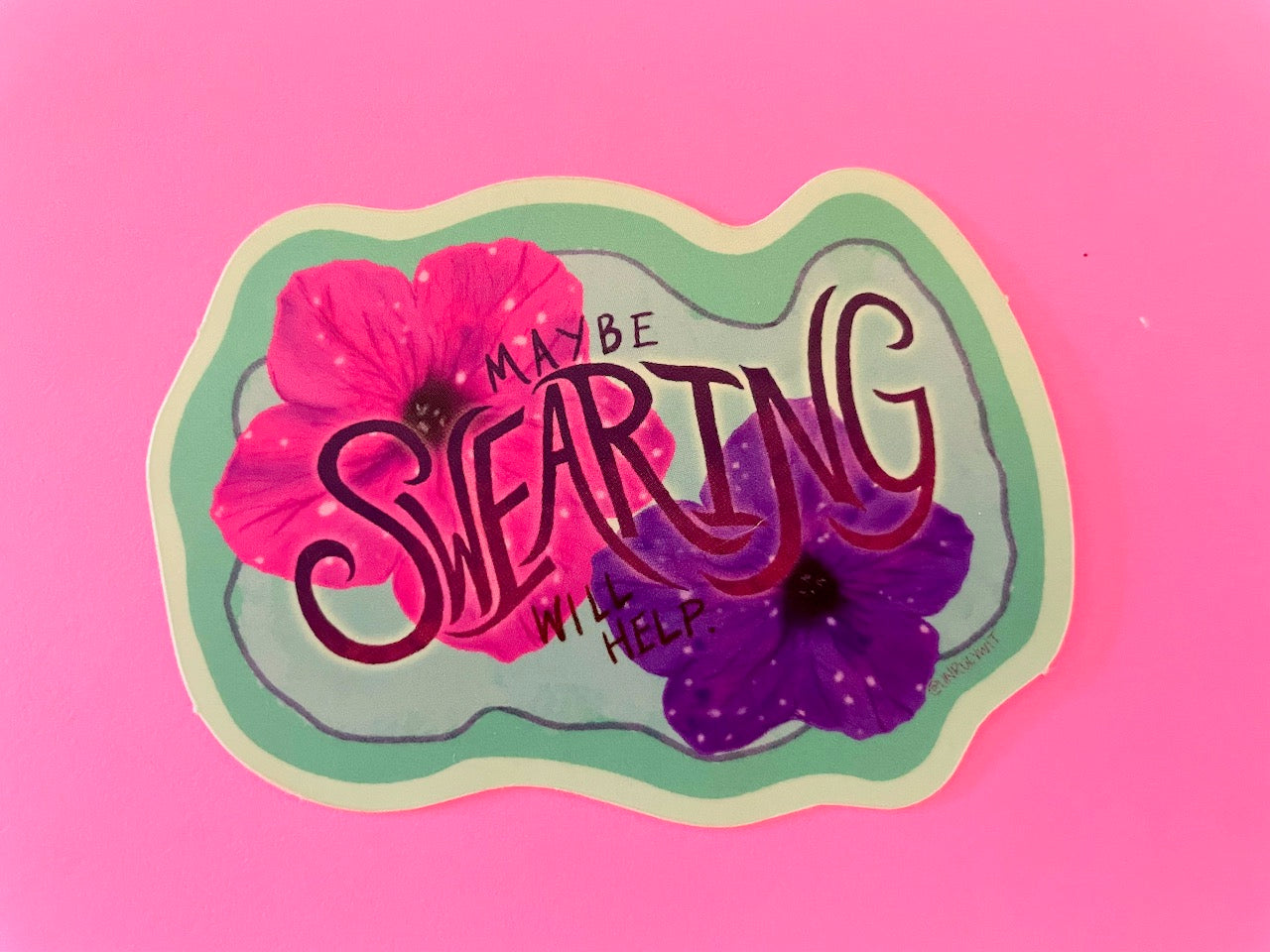 Express your frustration in a quirky and humorous way with the Maybe Swearing Will Help sticker. This 3" waterproof vinyl sticker features petunias, a symbol of frustration, and serves as a constant reminder that sometimes a little profanity can help. Stick it on any surface for a fun and playful touch. (Warning: may cause laughter.)
