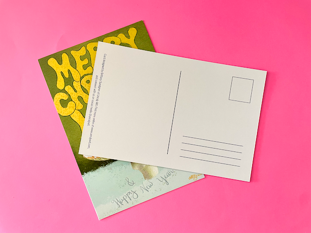 Spread some holiday cheer with this whimsical postcard featuring a festive mushroom. The playful message, "Merry Christmush! And a happy new year!" is perfect for a quick and cheerful greeting. The blank reverse side offers space for a personalized message. Locally printed in Denver by a woman-owned business.