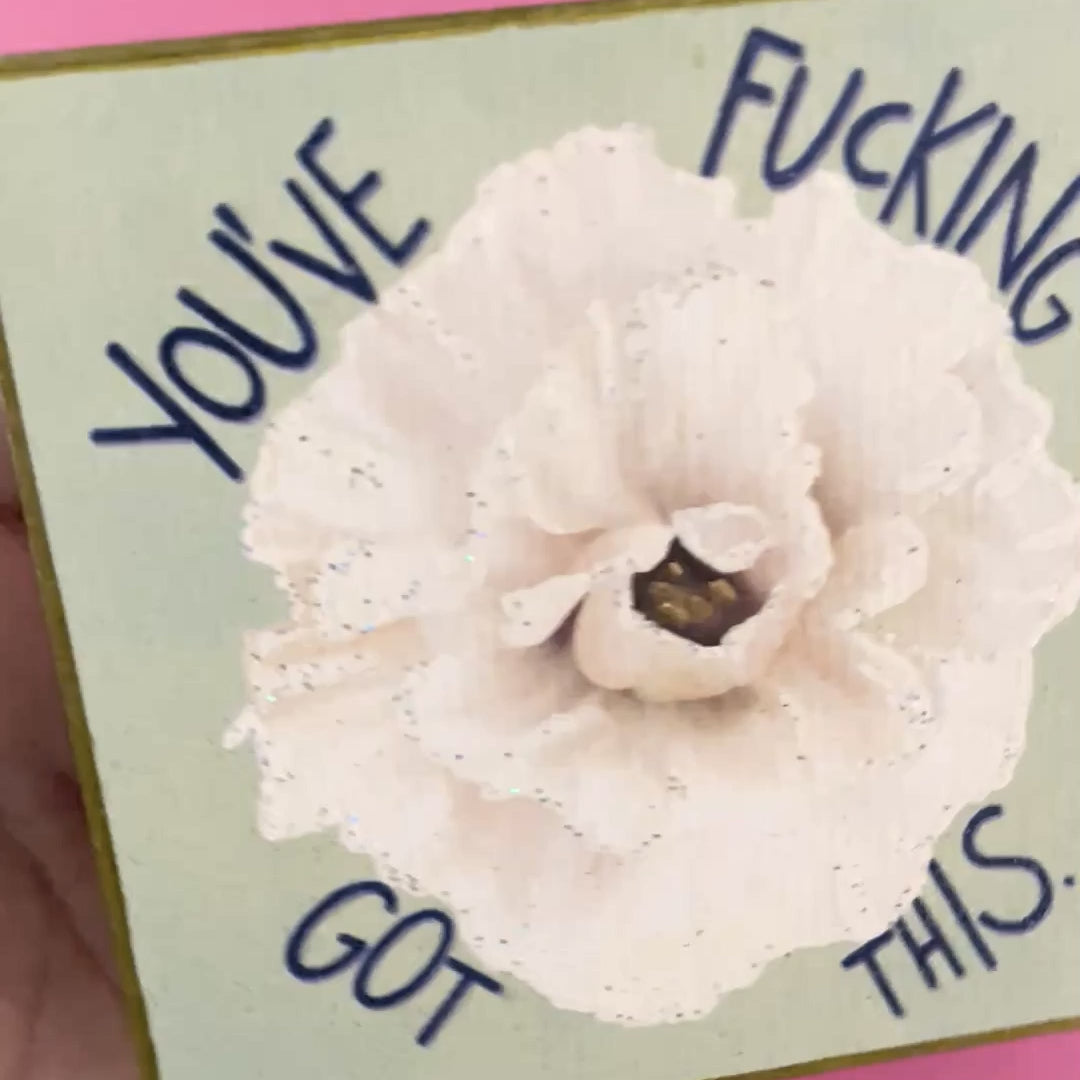 This bold and empowering art print is a must-have for anyone who needs a daily dose of motivation. Featuring the phrase "You've Fucking Got This" elegantly wrapped around a delicate white lisianthus flower, a symbol of positive energy and strength, this piece is sure to inspire.